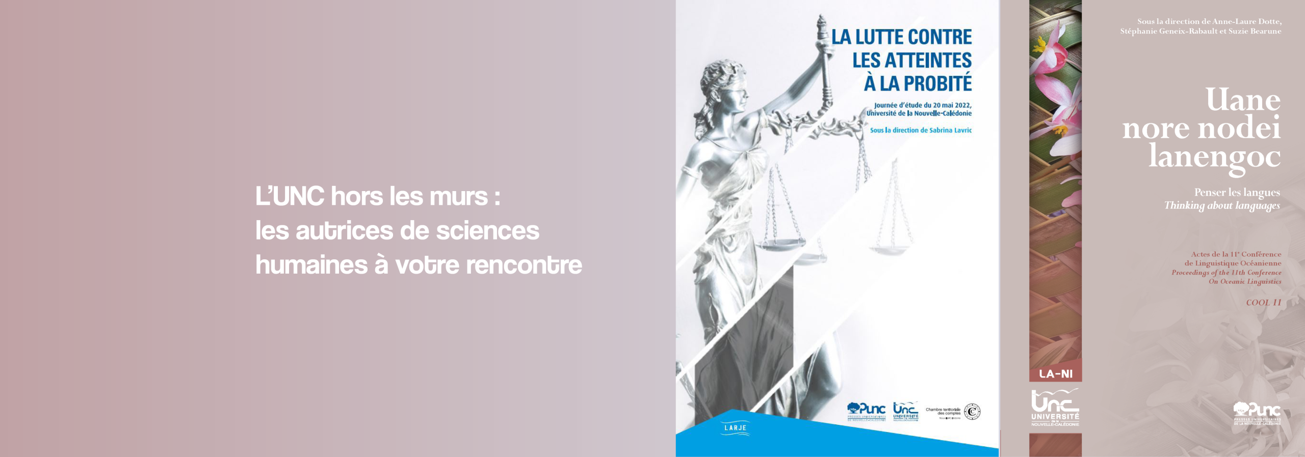 Sabrina Lavric explore les défis juridiques dans son livre La lutte contre les atteintes à la probité (2023), tandis que Anne-Laure Dotte, Stéphanie Geneix-Rabault, et Suzie Bearune se concentrent sur les langues océaniennes et leurs usages contemporains dans Uane nore nodei lanengo (Penser les langues).