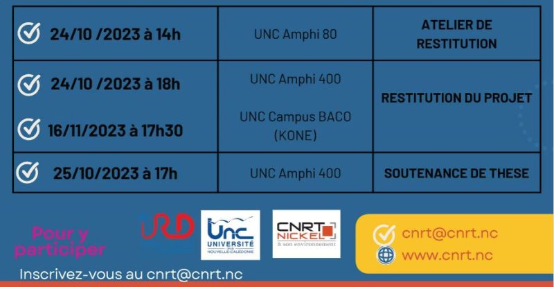 Nous contacter Campus de Nouville - BP R4 - 98851 Nouméa Cedex - Téléphone : (+687) 290 290 © Université de la Nouvelle-Calédonie - Mentions légales