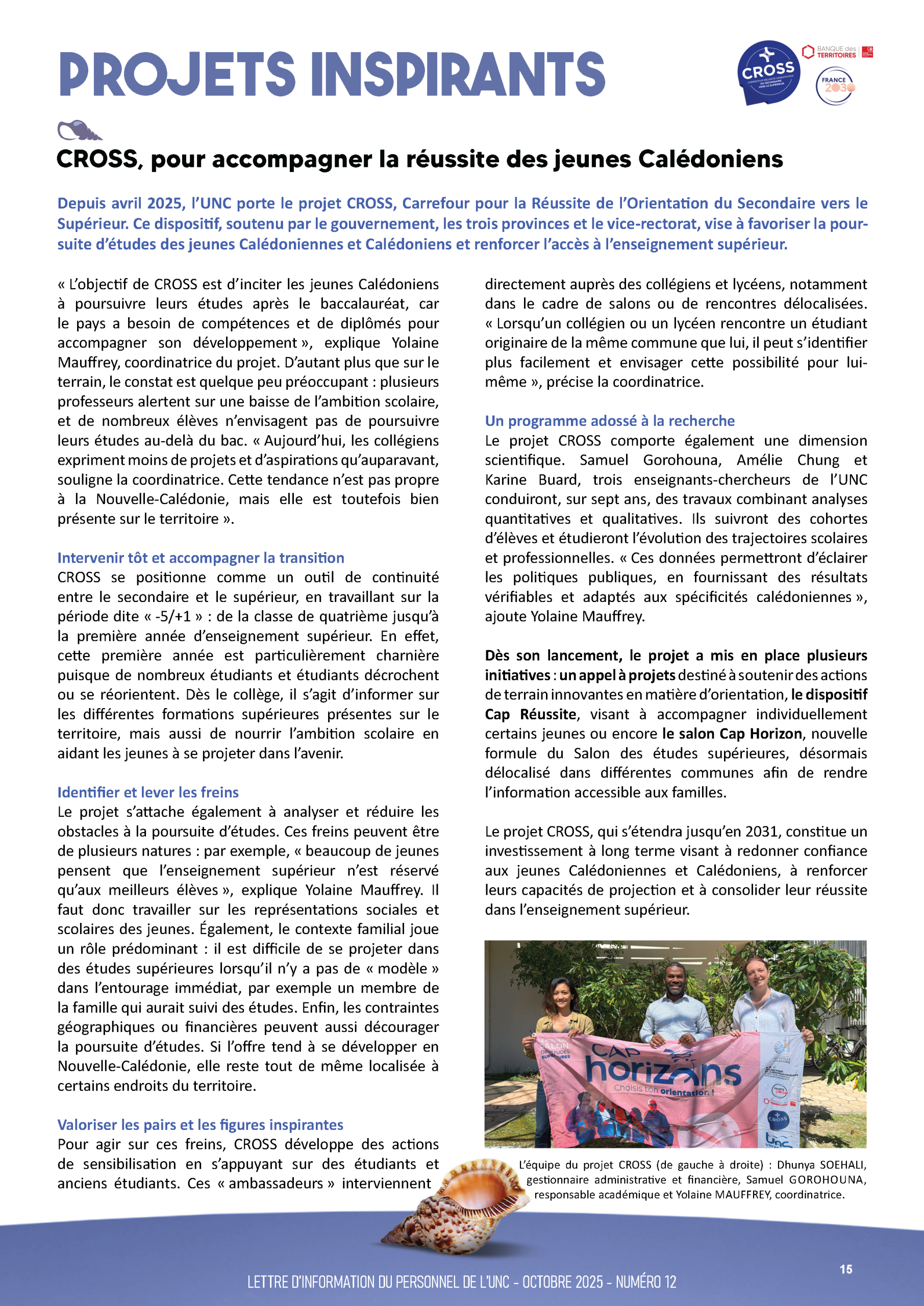 Yolaine MAUFFREY, coordinatrice du projet CROSS Yolaine.mauffrey@unc.nc / 29.01.91 / 54.89.72.