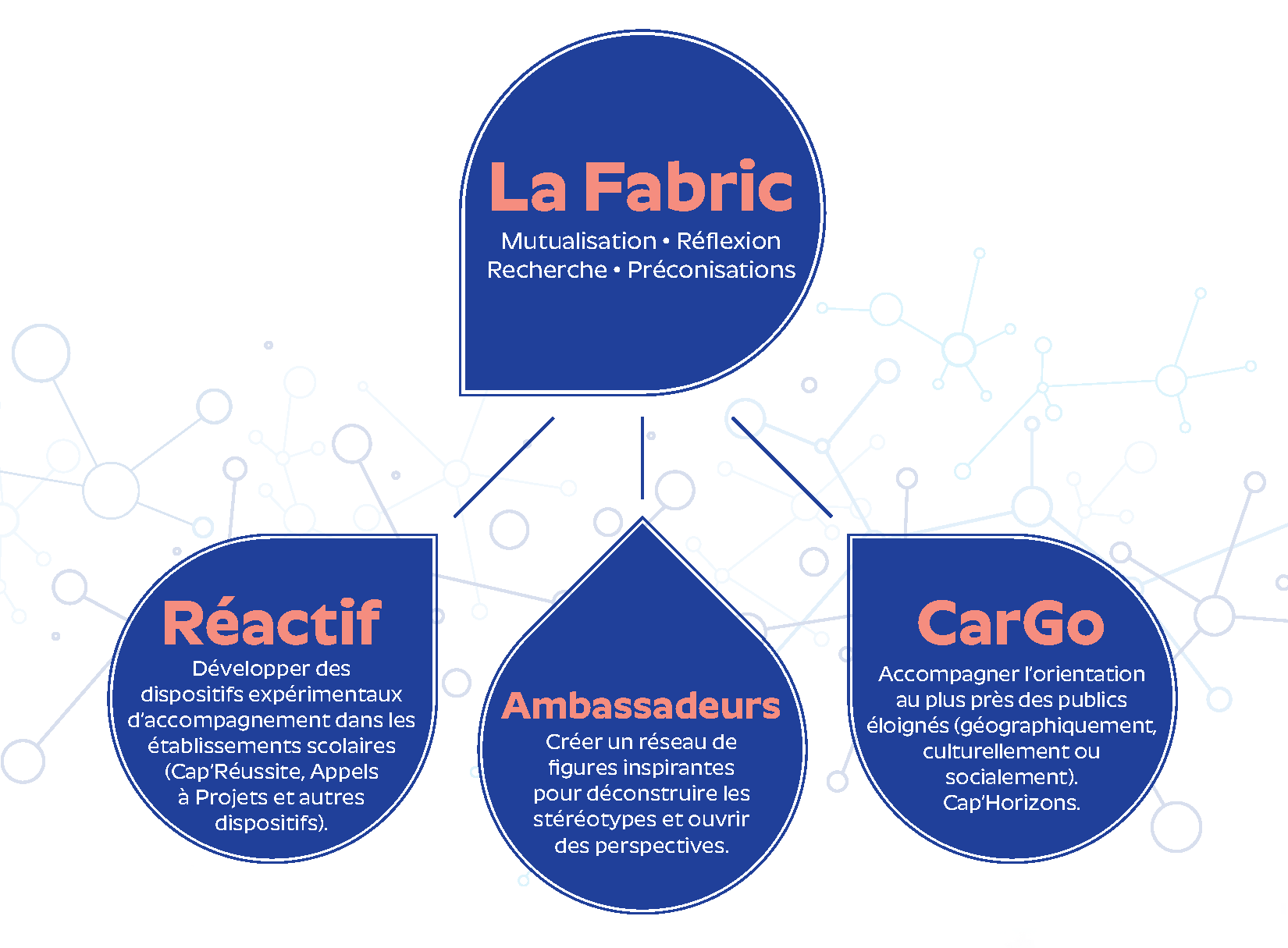 - Réactif : développer des dispositifs expérimentaux d’accompagnement dans les établissements scolaires : Dispositif Cap’Réussite pour les élèves mais aussi Appels à Projets pour accompagner le développement de nouveaux dispositifs innovants et réplicables sur l’ensemble du territoire.