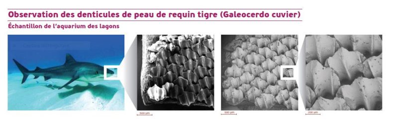 Observation des denticules de peau de requin tigre (Galeocerdo cuvier)