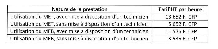 tarifs
