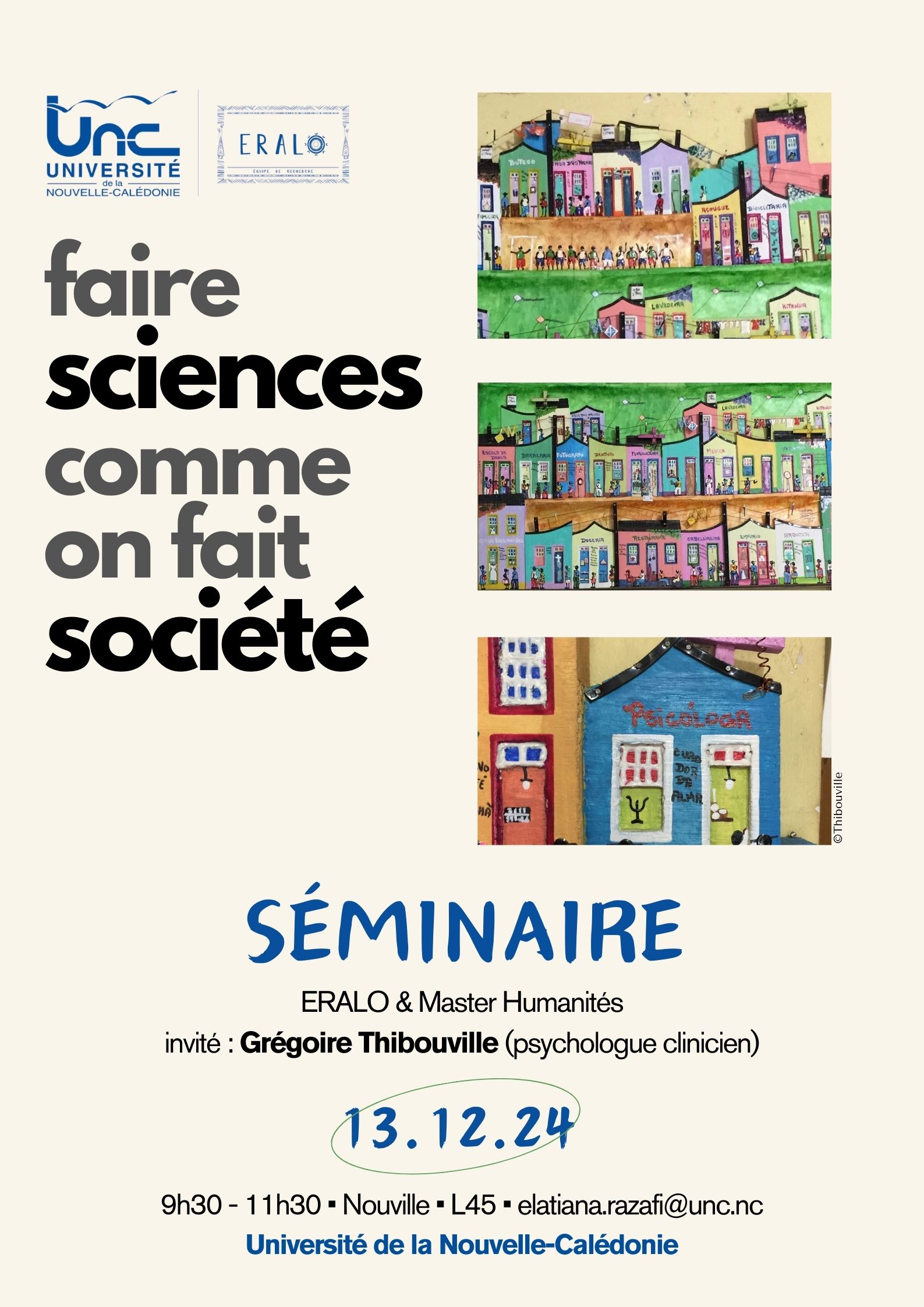 À l’occasion de ce dernier séminaire de l’année 2024 et du tout dernier séminaire de l’unité de recherche ERALO, la thématique retenue met à l’honneur la nécessaire mise en relation entre monde scientifique et réalités sociales, entre chercheures, chercheurs et sociétés : « Faire sciences comme on fait société ».